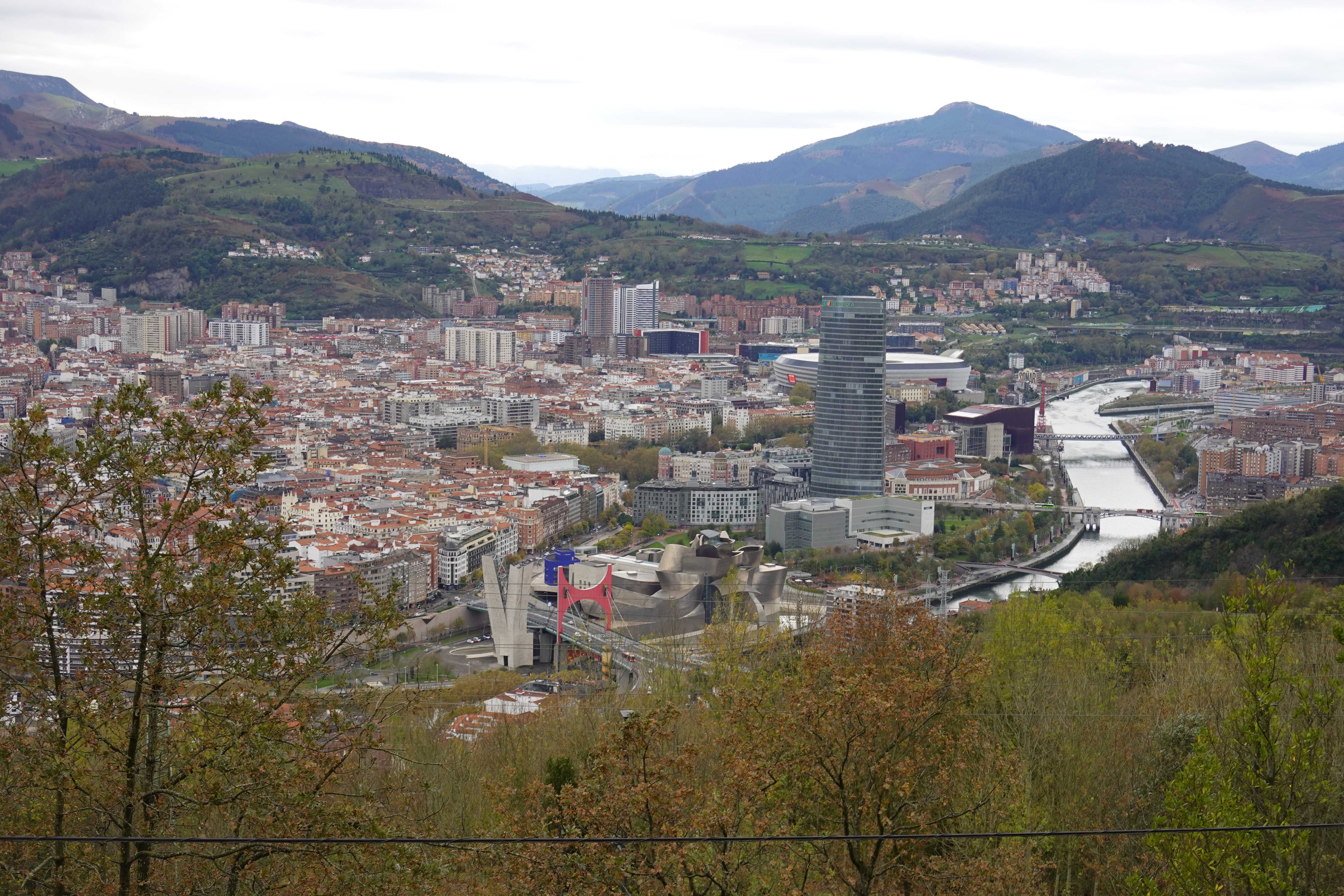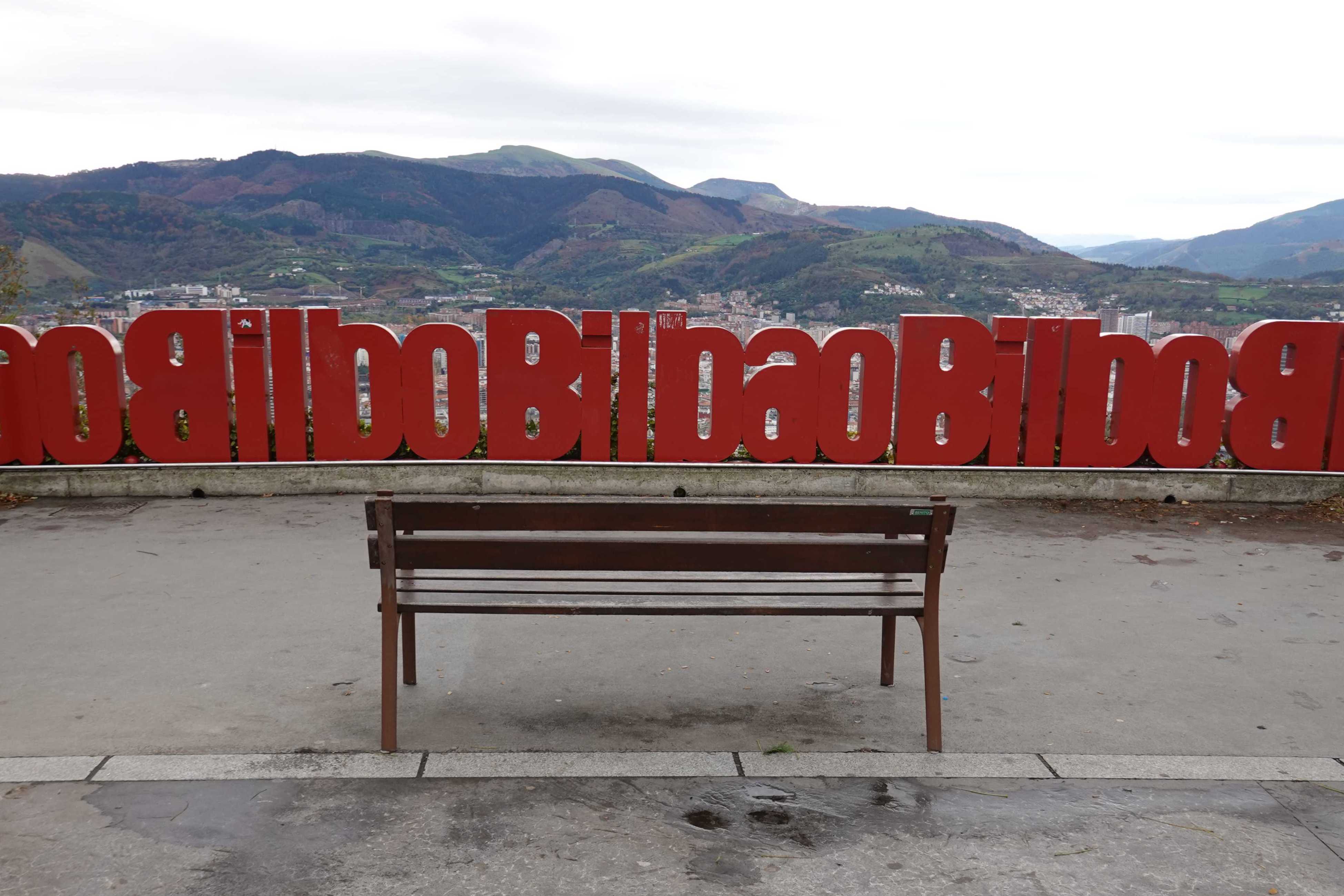 On Mount Artxanda, a big red label tells us what we’re looking at. Like most labels in the Basque Country, it’s bilingual, providing the name of the city in Basque and Spanish: Bilbo and Bilbao. Come closer, have a seat.
