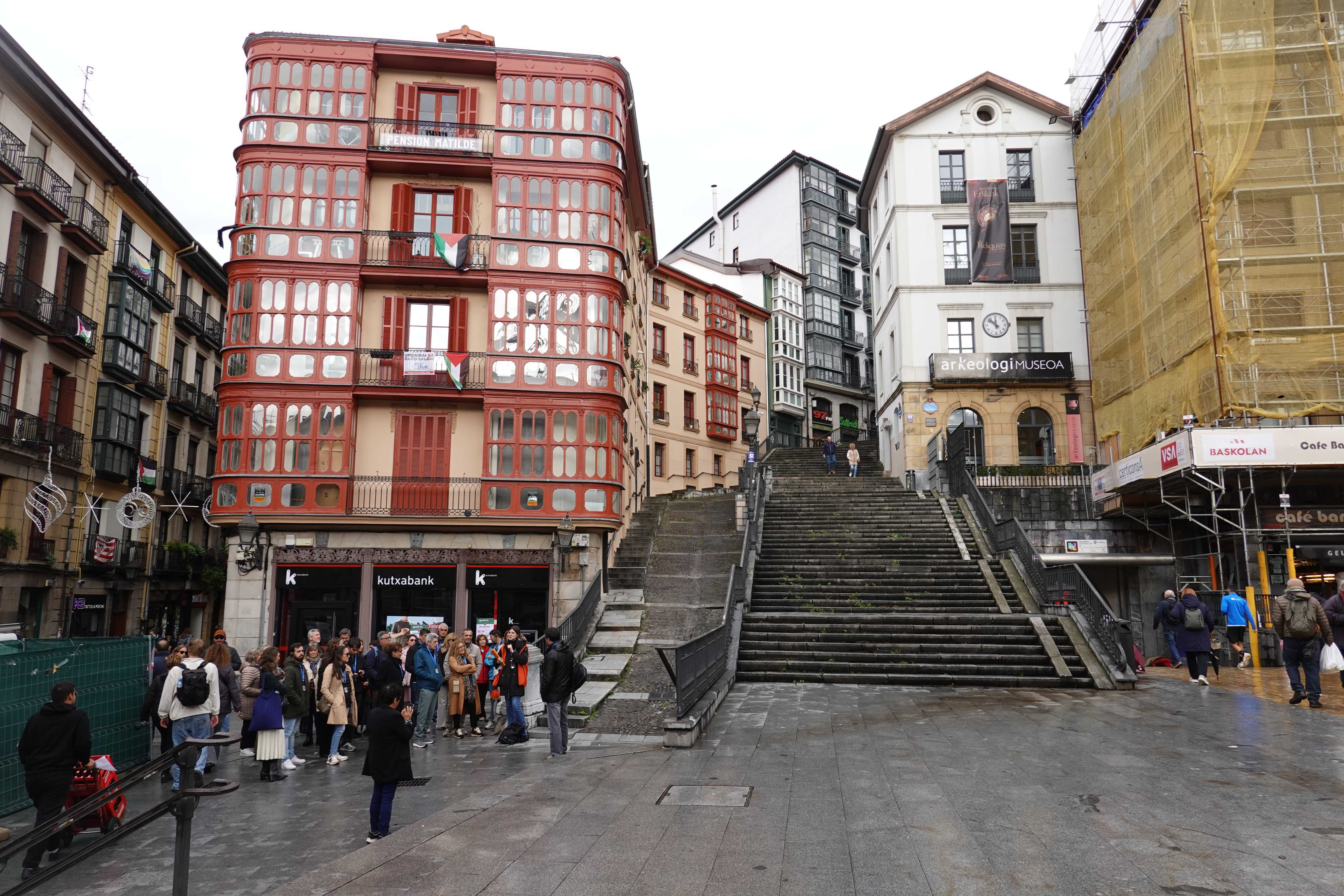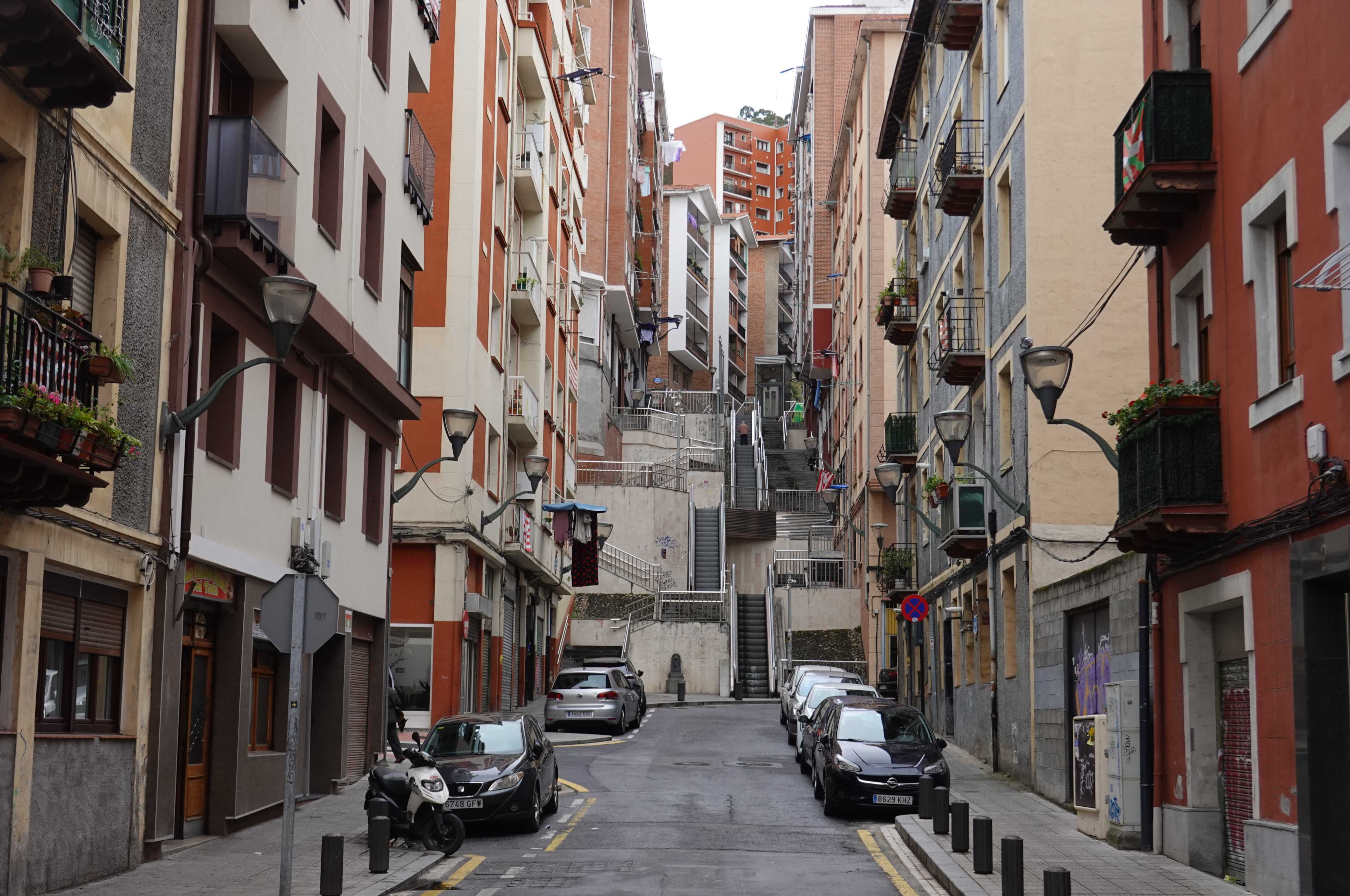 Since Bilbao is surrounded by hills, a lot of the city is hilly. Such as this residential area. It’s connected to the old town by the big grey elevator on the right.