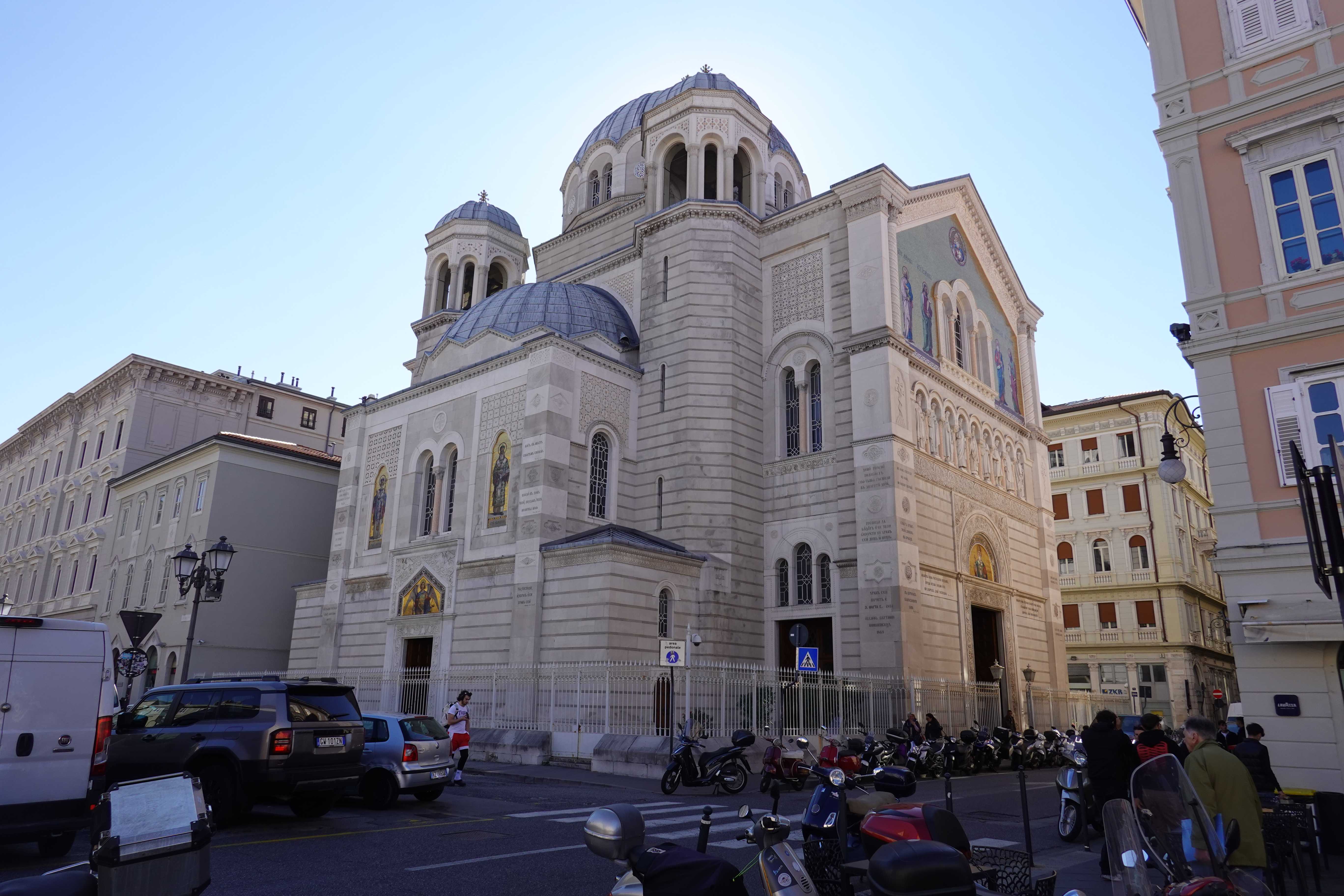 Just by the canal sits a Serbian Orthodox church. The outside inscriptions are in Church Slavonic, familiar for me but unexpected to see in Italy.