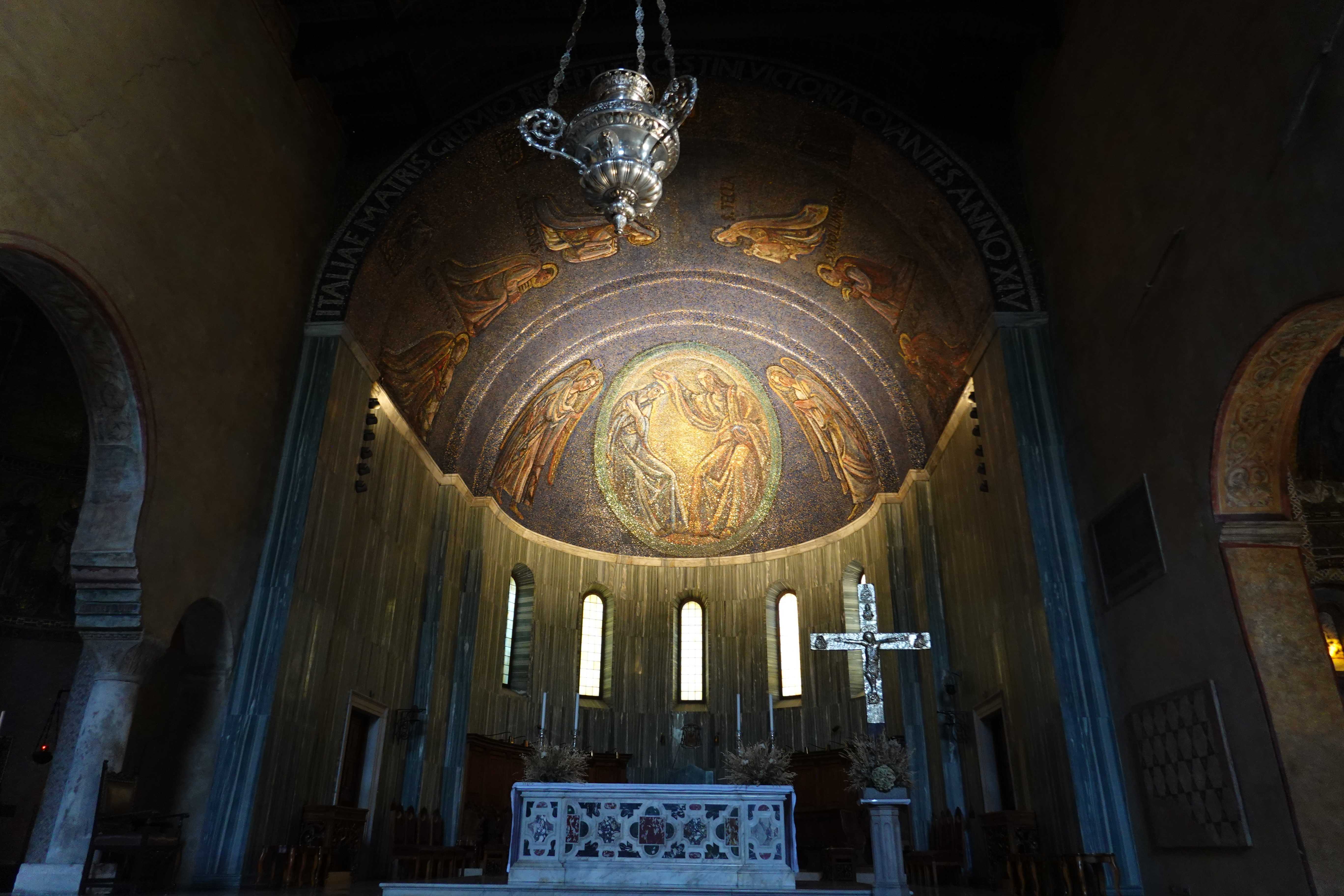 The city’s cathedral is in an unexpected style: Romanesque and Gothic outside, while the mosaics inside lean East. It would’ve been hard to guess where this place was.