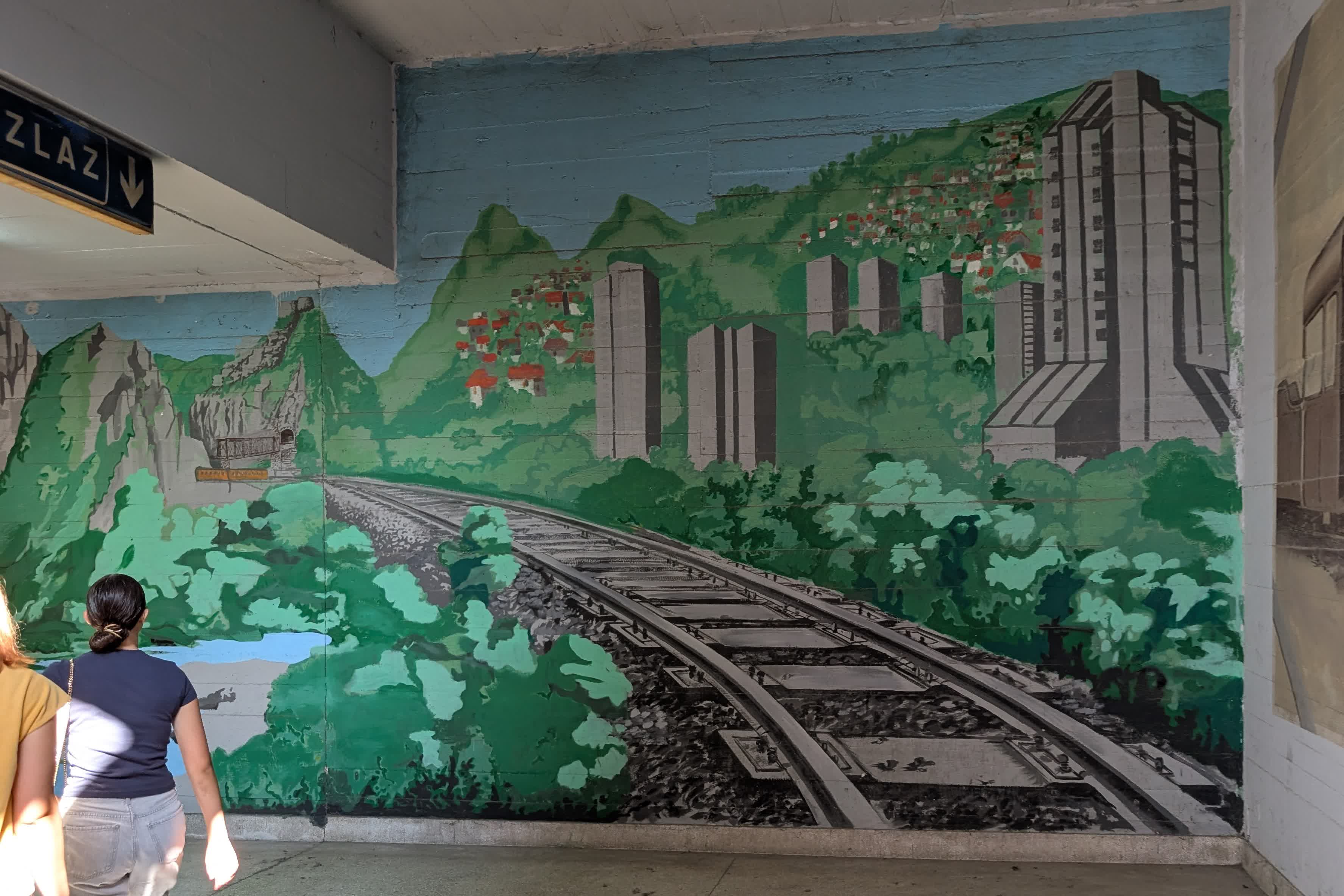 Arriving at the train station, I saw an intriguing painting depicting the city.