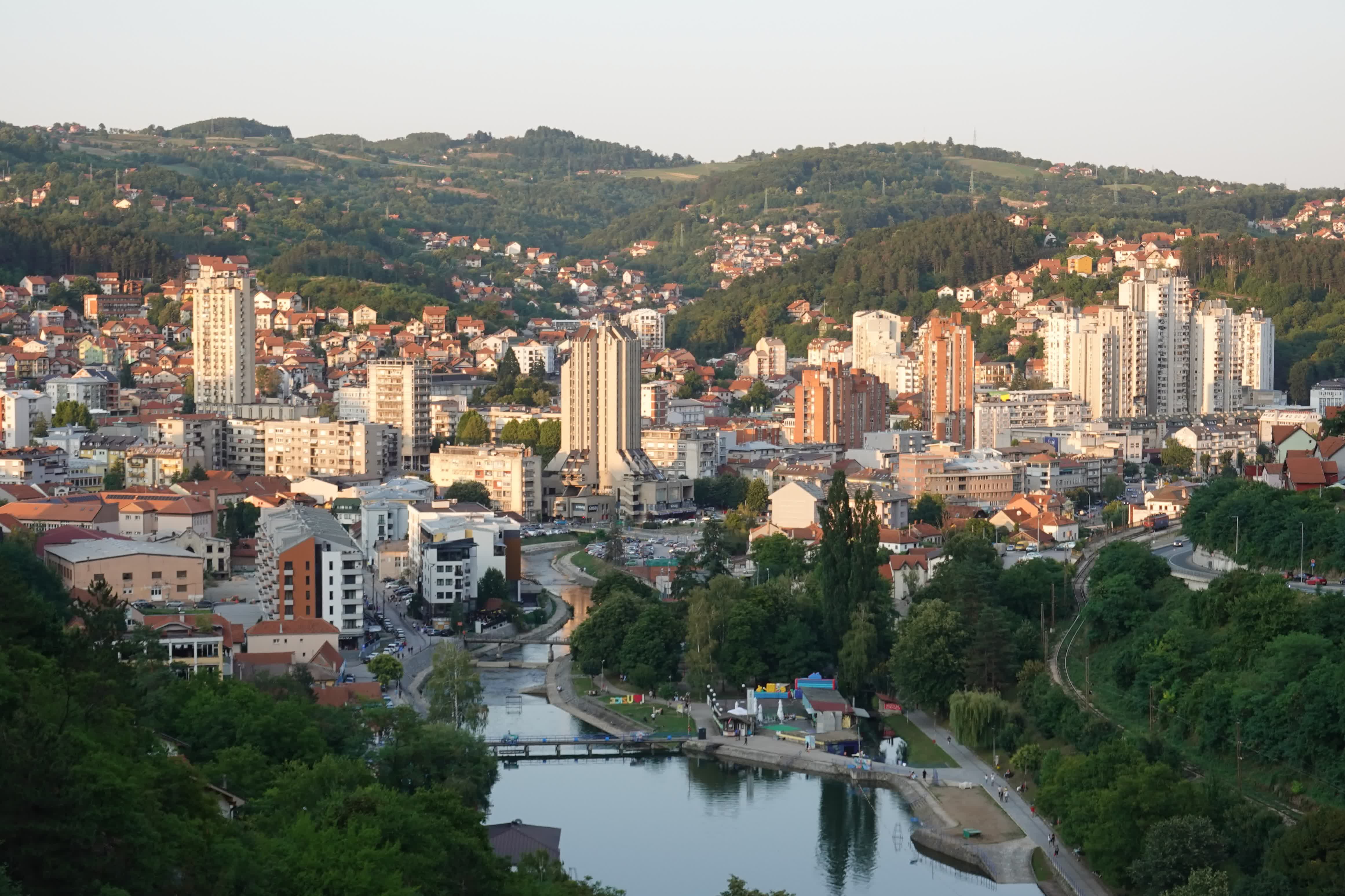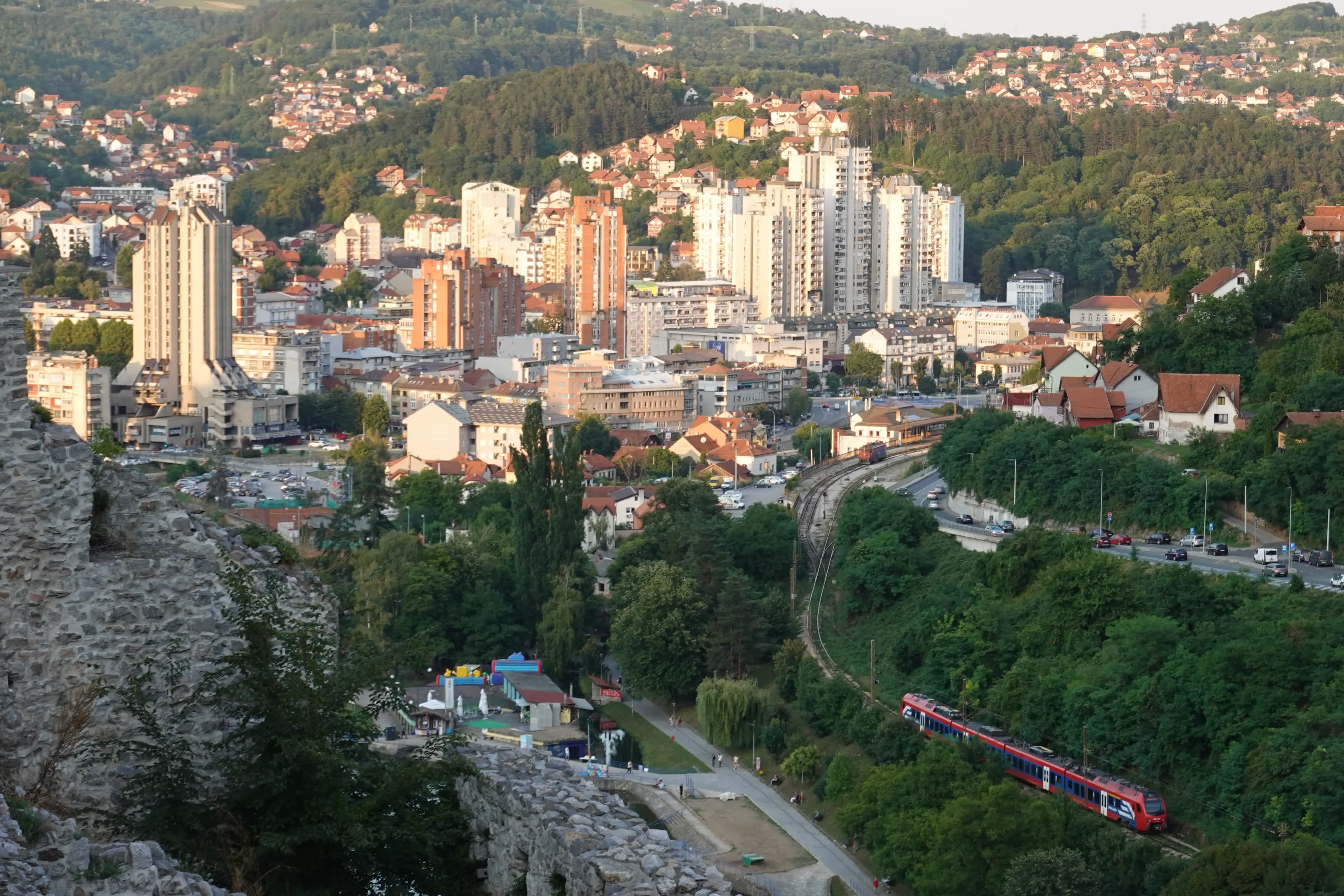 The artist has no illusions about how Uzice looks and doesn’t try to portray it in a better light. It’s surprisingly accurate: grey buildings, green hills with smaller red-roofed houses and the railway.