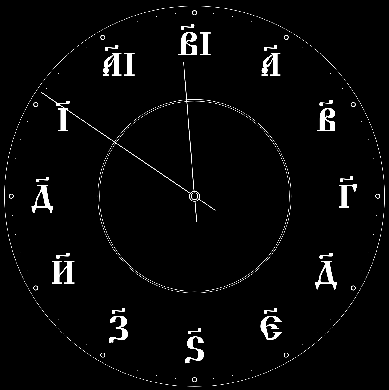 - Cyrillic clock (JavaScript, d3.js): Orthodox time, 2024