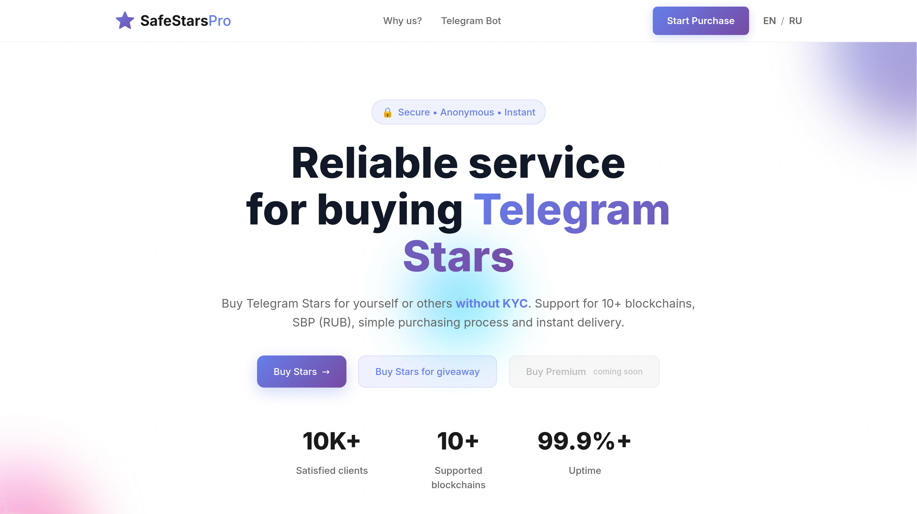 - SafeStars (TypeScript, React, Express.js, Telegram bot): service for buying Telegram stars, 20k+ monthly users, 2025